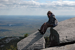 Ну ладно, оставим особенности этнического состава населения, выезжающего 9 мая на шашлыки, перейдем лучше к горе. Собственно, идея поехать куда-то гулять у нас возникла, когда мы приехали в парк в субботу и ощутили, как же хорошо на природе. Гора Монаднок была выбрана нами за две вещи: во-первых, она находится в 1-30 езды от нас, а во-вторых, на ней обещали альпийскую природу. Мы соблазнились, и следующий день провели в покорении аж 600-метровой высоты. Всего там 900 над уровнем моря, но сама гора начинается где-то на 300 метрах.