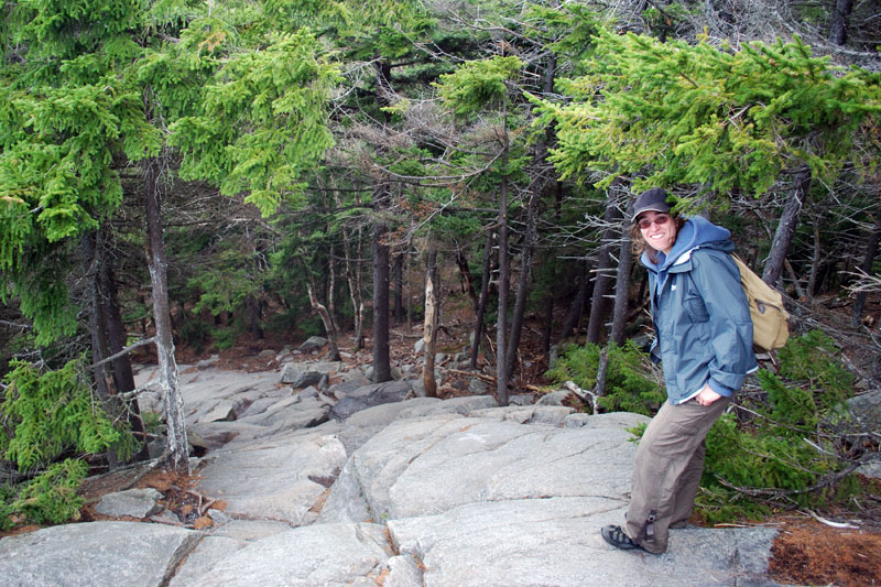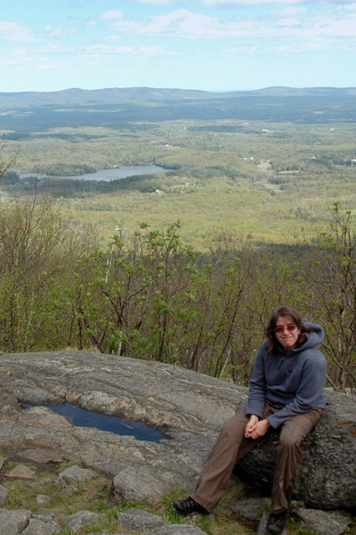Ну ладно, оставим особенности этнического состава населения, выезжающего 9 мая на шашлыки, перейдем лучше к горе. Собственно, идея поехать куда-то гулять у нас возникла, когда мы приехали в парк в субботу и ощутили, как же хорошо на природе. Гора Монаднок была выбрана нами за две вещи: во-первых, она находится в 1-30 езды от нас, а во-вторых, на ней обещали альпийскую природу. Мы соблазнились, и следующий день провели в покорении аж 600-метровой высоты. Всего там 900 над уровнем моря, но сама гора начинается где-то на 300 метрах.